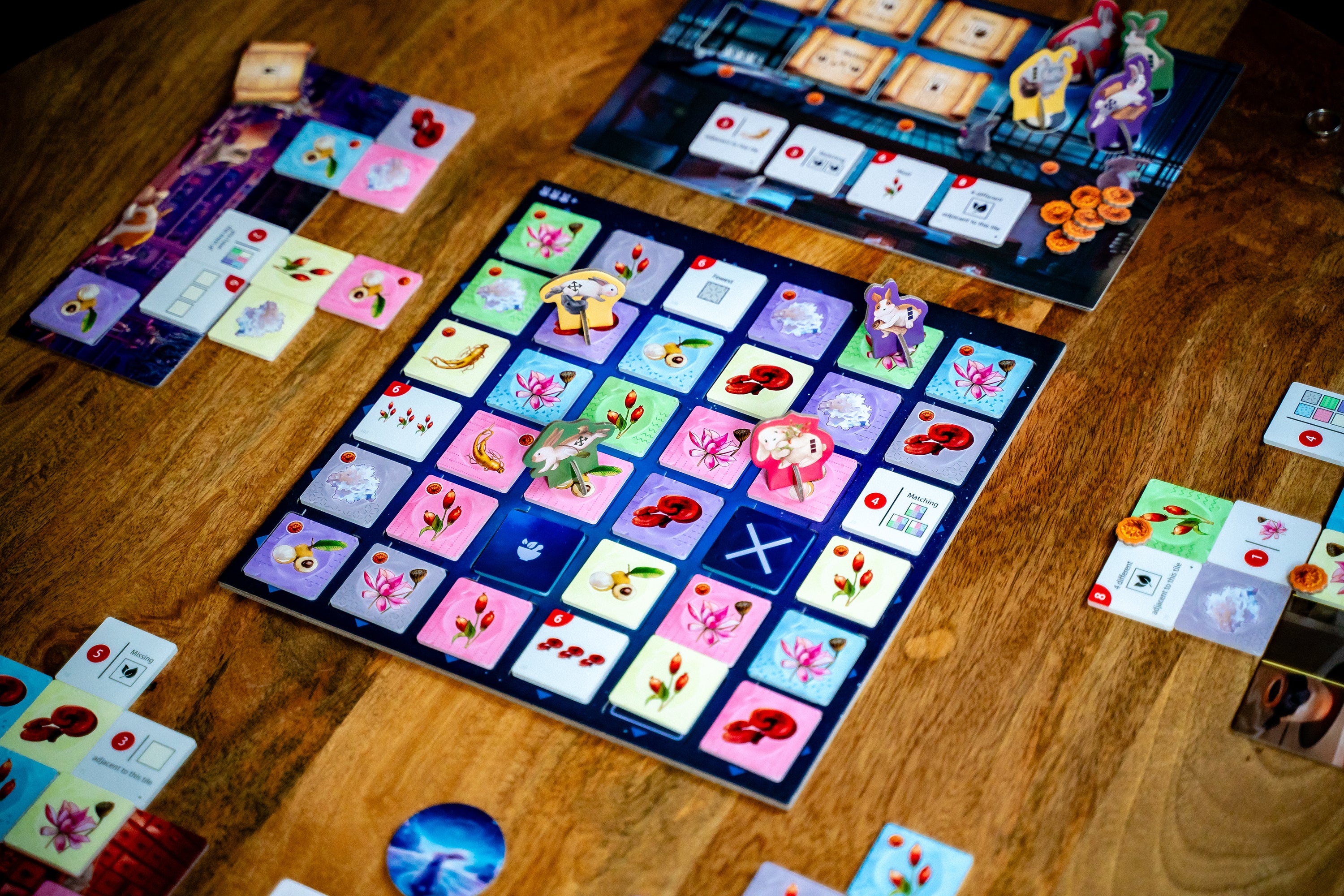Moon Bunny is competitive and strategic board game with grid movement and tile placement mechanics.